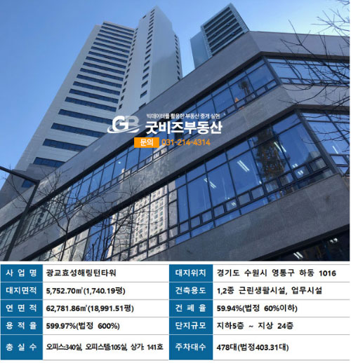 광교지식산업센터, 사무실 등 업무용 부동산 투자 및 입주 문의는 「굿비즈부동산」으로 연락주세요.