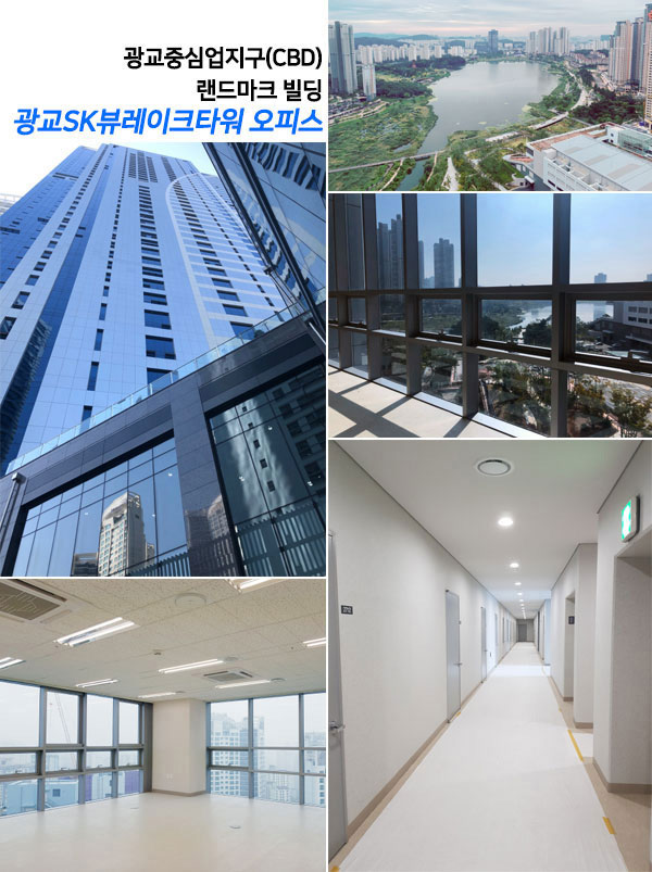 광교SK뷰레이크타워 오피스(사무실)는 오피스텔, 오피스, 근린생활시설 등으로 구성된 업무복합단지이며, 수원컨벤션센터와 바로 인접해 있으며 광교호수공원과 맞닿아 있어 전층이 호수 조망권을 가지고 있는 업무시설입니다. 광교는 호수 조망권을 가지고 있는 단지들은 프리미엄도 매우 높게 형성되어 있습니다.