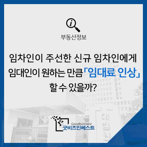 임대인은 개정법 제10조의 4 제1항 제3호에 규정된 ‘현저히 고액의 차임 및 보증금을 요구하는 경우’에 해당되지 않는 한 합리적 범위에서 신규 임차인과 협의 하에 차임 및 보증금 인상이 가능합니다. 즉 신규 임차인과는 새로운 계약을 체결하는 것이므로 차임 및 보증금을 새로 정하는 것이지 인상하는 것이라고 볼 수 없을 것입니다.