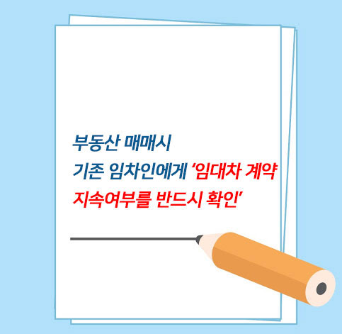 따라서, 세입자의 계약 해지로 인해 당초 기대했던 수익률이 깨지는 등 예상치 않은 손해를 입지 않기 위해서는 매매계약 이전에 매도인이나 매수인은 임차인에게 임대차 지속 여부를 문의하여 증거를 남겨두어야 합니다. 공인중개사도 분쟁을 예방하기 위해서 임대차 지속 여부를 꼭 확인해 두는 것이 좋습니다.