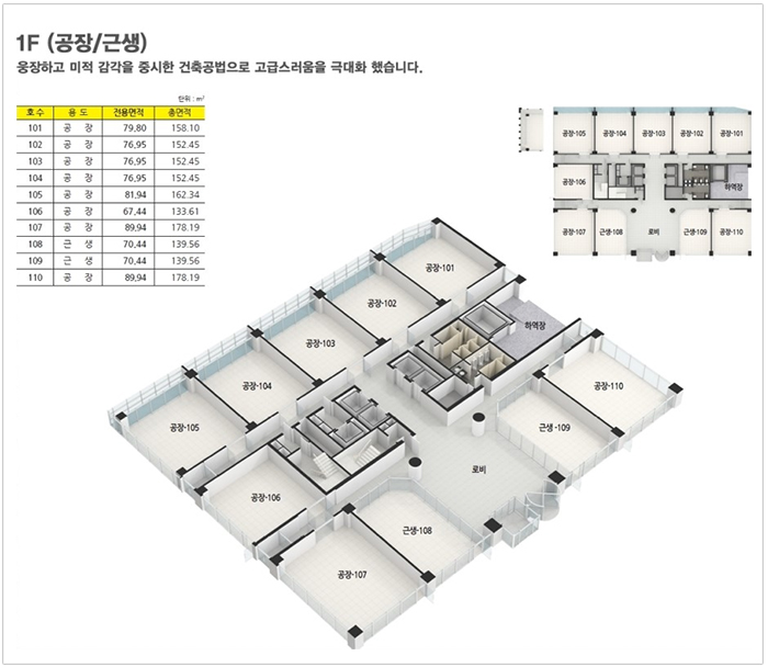 단지는 지하 4층~지상 15층 규모로 전용면적 25평, 50평 등 중대형 평형으로 만 공급되었으며, 주차 대수도 법정 보다 2배 가까이 조성되어 있습니다.