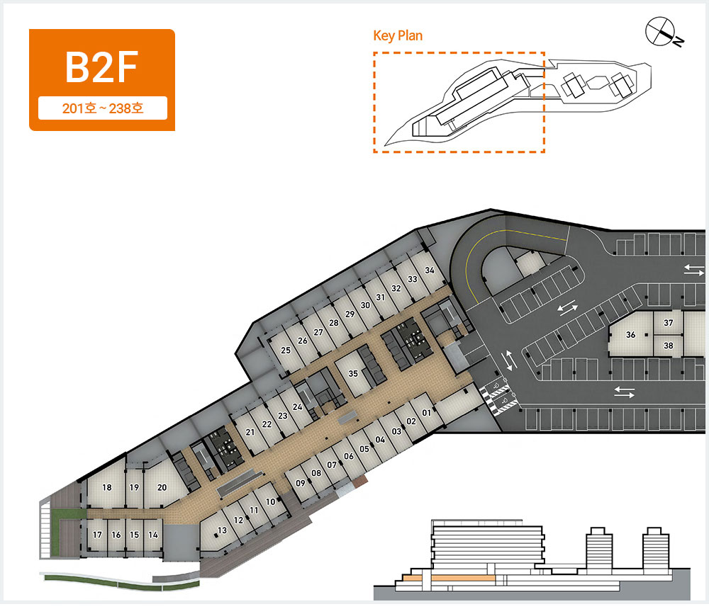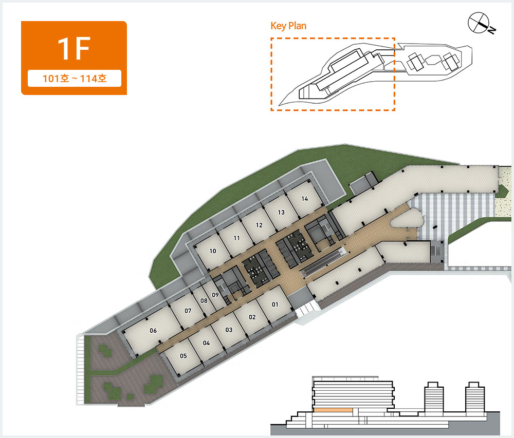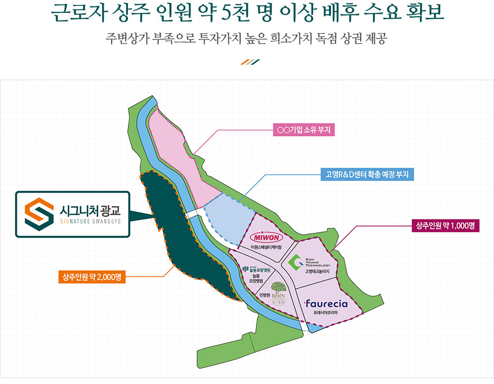 입지는 경기도 용인시 수지구 상현동 광교신도시 내에 위치해 있으며, 신분당선 상현역과 도보 10분 거리에 있습니다. 수원과 용인을 연결하는 포은대로에 접해 있어 단지 접근성이 매우 뛰어나며, 무엇보다 광교 신도시 내에 포함되어 기업하기 좋은 입지여건을 갖추고 있다는 평가를 받는 지식산업센터입니다.